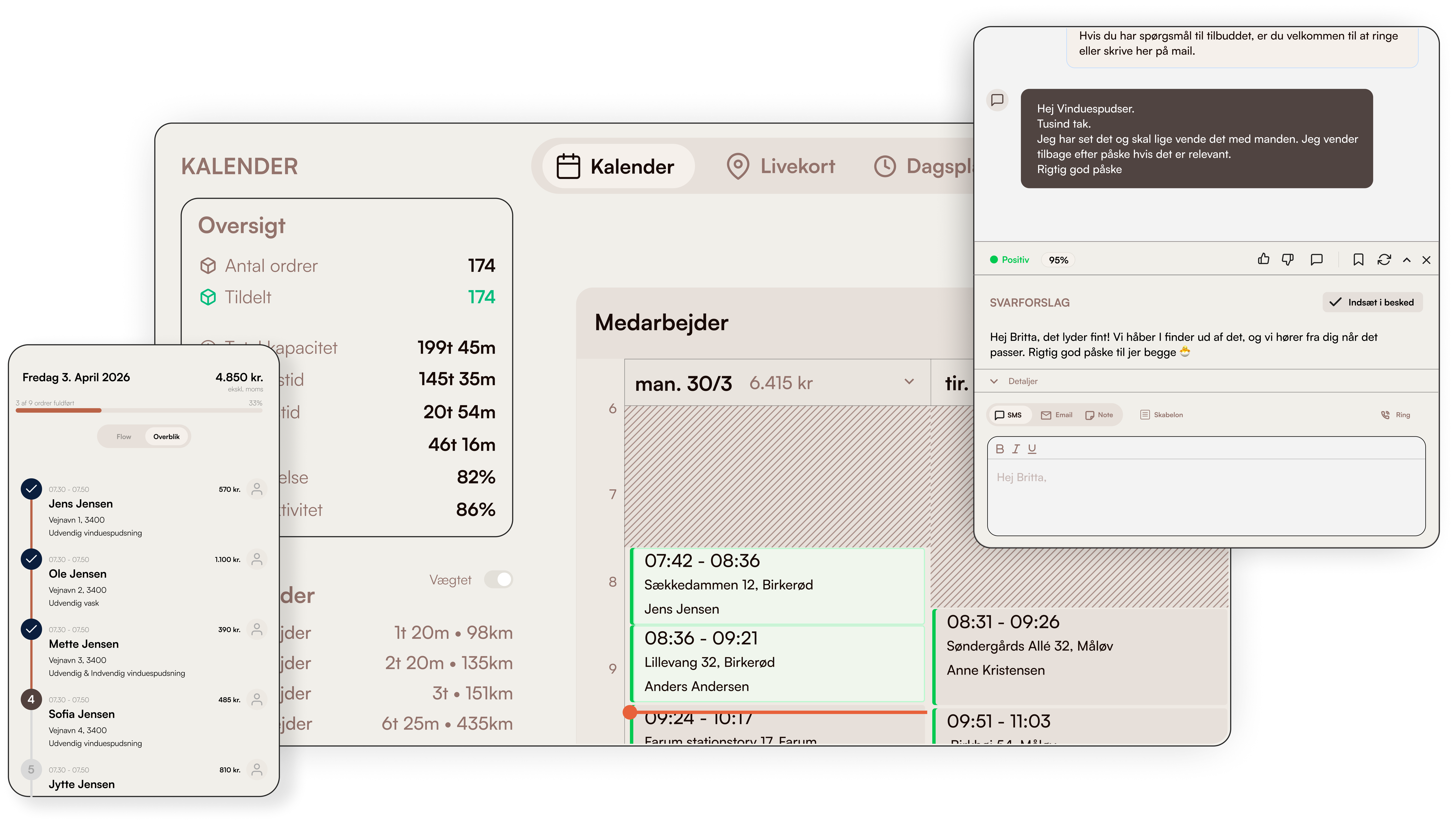Planlægning, rutestyring, kundehåndtering og kommunikation — samlet i ét moderne system. Bygget af folk der kender branchen.